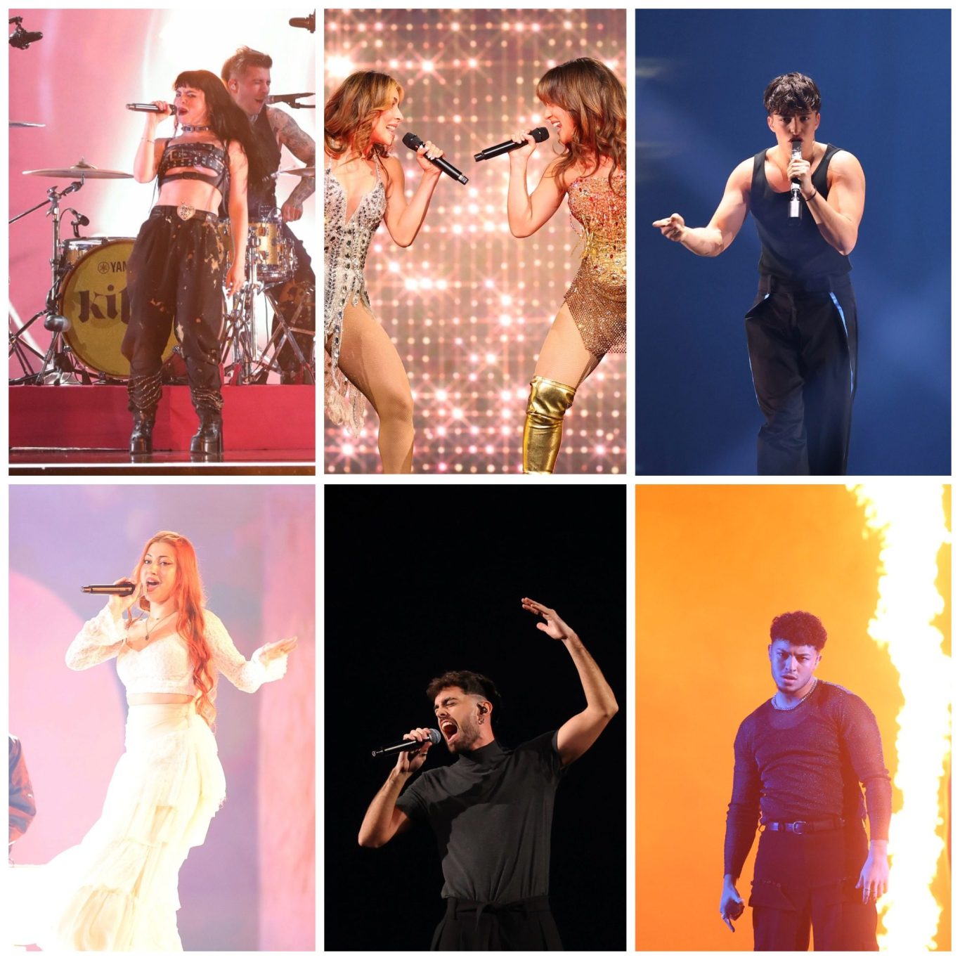 Los seis primeros finalistas del Benidorm Fest 2026. Fotos: RTVE